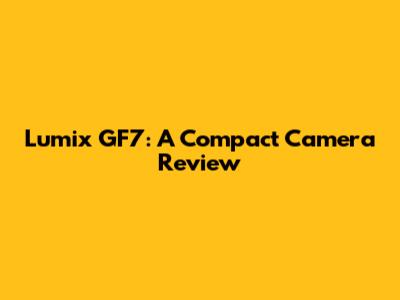 Lumix GF7: A Compact Camera Review