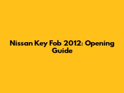 Step-by-Step Guide to Open Your 2012 Nissan Key Fob