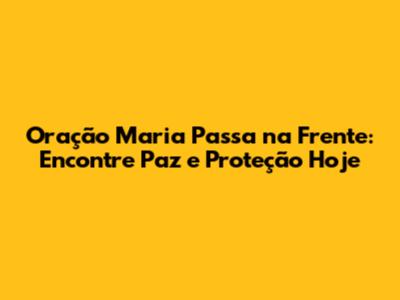 A Oração Maria Passa na Frente é muito mais do que uma simples prece; é um porto seguro de esperança, fé e proteção. Ao incorporá-la em sua vida, você abre seu coração para a graça de Deus e permite que Maria guie seus passos em direção à paz e à felicidade. Se você está em busca de conforto, orientação ou simplesmente uma conexão mais profunda com a fé, a oração pode ser exatamente o que você precisa. Reze com fé, confie na intercessão de Maria e deixe que a luz divina ilumine seu caminho. Que Maria passe na frente e abençoe cada um de nós.