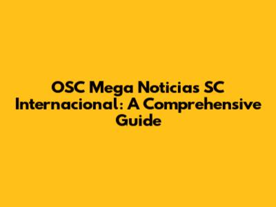 Hey guys! Let's dive into the exciting world of OSC Mega Noticias SC Internacional. This is where we'll explore everything you need to know, from breaking news and in-depth analysis to the latest updates. We'll be keeping a close eye on all the happenings, so you won't miss a thing. Whether you're a die-hard fan or just curious, this guide is your one-stop shop for all things OSC Mega Noticias SC Internacional. Get ready to be informed, engaged, and excited!