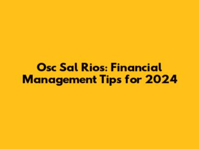 Osc Sal Rios: Financial Management Tips For 2024