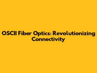 OSCII Fiber Optics: Revolutionizing Connectivity