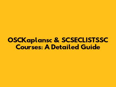OSCKaplansc & SCSECLISTSSC Courses: A Detailed Guide