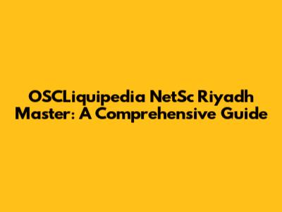 OSCLiquipedia NetSc Riyadh Master: A Comprehensive Guide