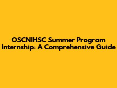 OSCNIHSC Summer Program Internship: A Comprehensive Guide
