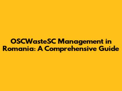 OSCWasteSC Management In Romania: A Comprehensive Guide
