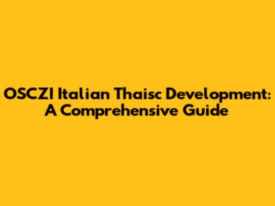 OSCZI Italian Thaisc Development: A Comprehensive Guide