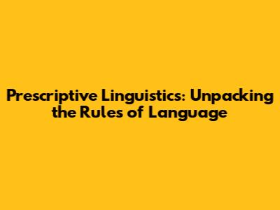 Prescriptive Linguistics: Rules, Usage, And Grammar
