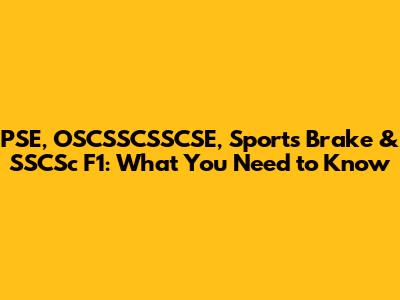 PSE, OSCSSCSSCSE, Sports Brake & SSCSc F1: What You Need To Know
