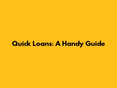 Quick Loans: A Handy Guide