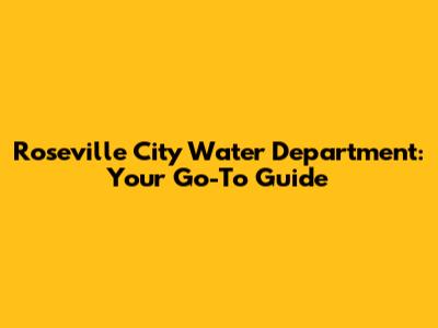Roseville City Water Department: Your Go-To Guide