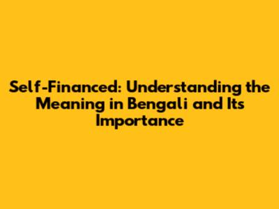 Self-Financed: Unveiling The Bengali Meaning And Its Significance