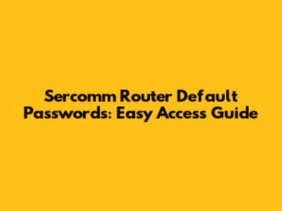 Sercomm Router Default Passwords: Easy Access Guide