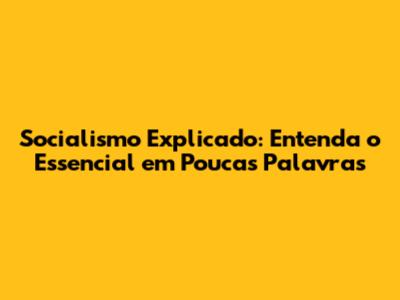 Socialismo Explicado: Entenda O Essencial Em Poucas Palavras