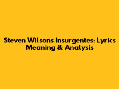 Steven Wilson's Insurgentes: Lyrics Meaning & Analysis