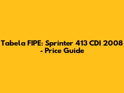 Hey guys! Are you curious about the Tabela FIPE value for a Sprinter 413 CDI 2008? You've come to the right place! Understanding the Tabela FIPE is super important when you're buying or selling a used vehicle in Brazil. It gives you a benchmark to ensure you're getting a fair price. Let's dive into what the Tabela FIPE is all about and how it applies to the Sprinter 413 CDI 2008. This article will provide you with detailed insights, helping you navigate the world of vehicle valuation with confidence. We'll cover everything from what influences the price to where you can find the most up-to-date information. So, buckle up and let's get started!