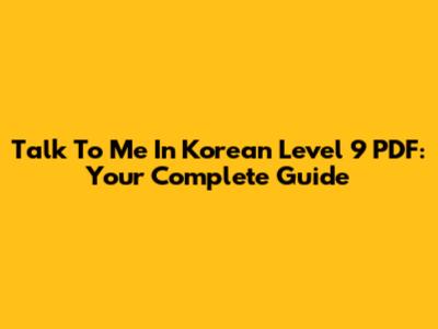 Talk To Me In Korean Level 9 PDF: Your Complete Guide