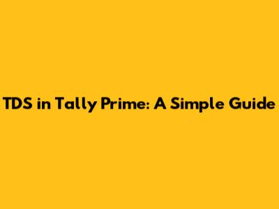 TDS In Tally Prime: A Simple Guide