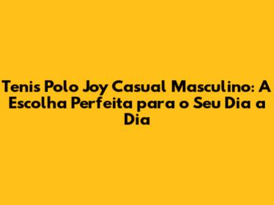 Tenis Polo Joy Casual Masculino , que combinam estilo, conforto e versatilidade? Se vocĂȘ busca um calçado que te acompanhe em diversas ocasiĂ”es, desde um passeio no parque atĂ© um encontro com amigos, os tĂȘnis da Polo Joy sĂŁo a escolha ideal. Neste artigo, vamos explorar todos os detalhes sobre essa linha de tĂȘnis, destacando seus diferenciais, caracterĂ­sticas e como eles podem transformar o seu visual. Prepare-se para descobrir por que os tĂȘnis Polo Joy conquistaram o coração de tantos homens que valorizam o conforto sem abrir mĂŁo da elegĂąncia.