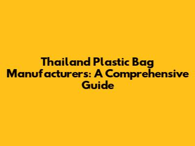 Thailand Plastic Bag Manufacturers: A Comprehensive Guide