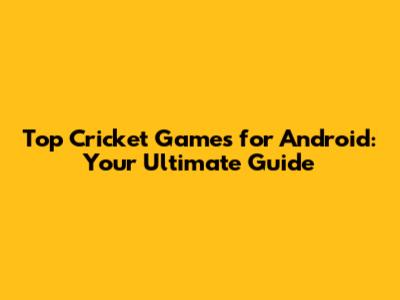 Top Cricket Games For Android: Your Ultimate Guide