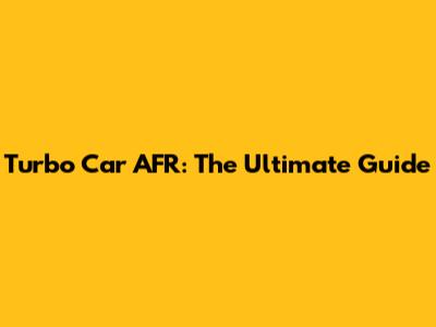 Turbo Car AFR: The Ultimate Guide