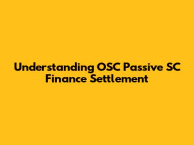 OSC's Role in Finance Settlement for Passive SC