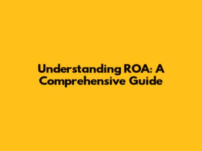 Understanding ROA: A Comprehensive Guide