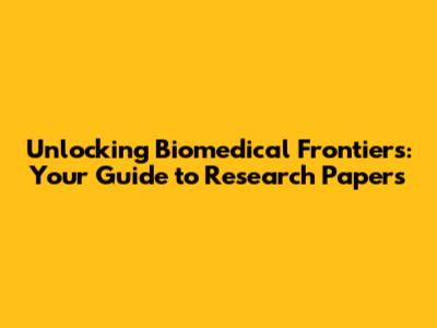 Unlocking Biomedical Frontiers: Your Guide To Research Papers