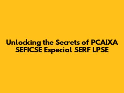 Unlocking The Secrets Of PCAIXA SEFICSE Especial SERF LPSE