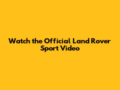 Watch The Official Land Rover Sport Video