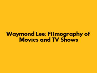 Waymond Lee: Filmography Of Movies And TV Shows